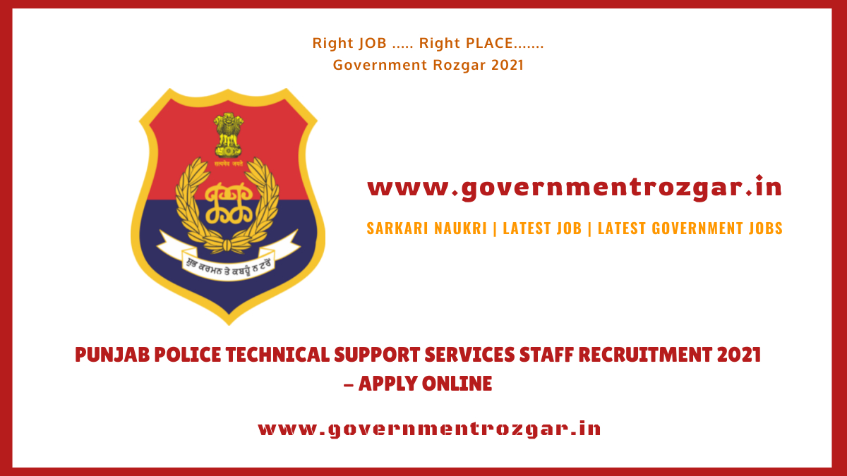 Punjab Police Technical Support Services Staff Recruitment 2021- Apply Online